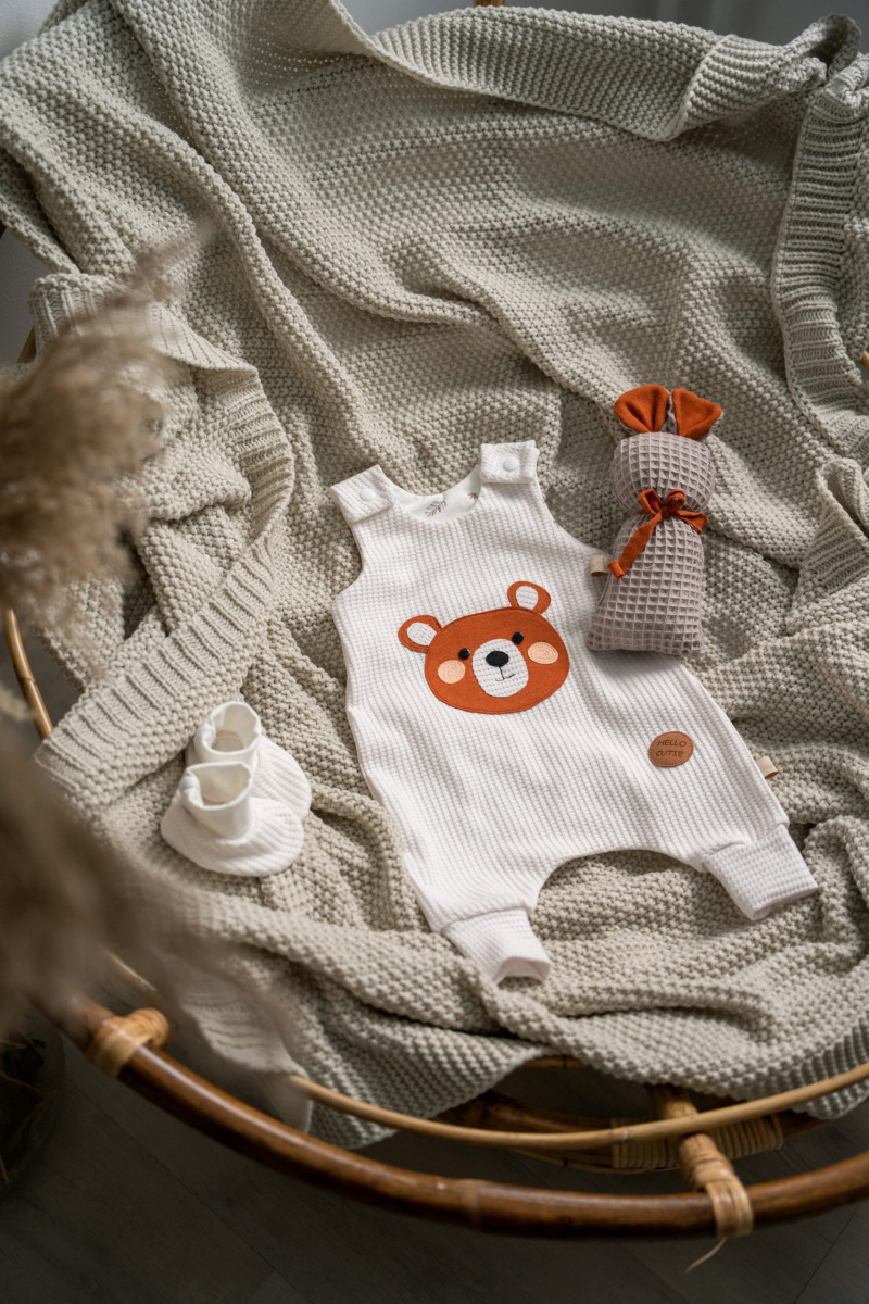 Narejene so iz kvalitetnega in udobnega bombaža, ki je prijazno dojenčku, iz mehkega in prožnega bombažnega jerseya, 95% bombaž, 5% elastan.